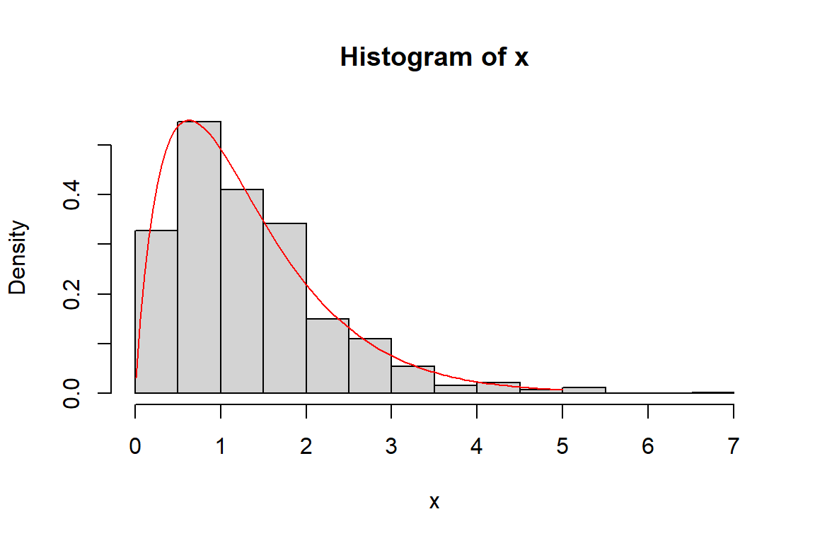 dexp(x, rate = 2) # hustota Exp(2) v hodnotách x