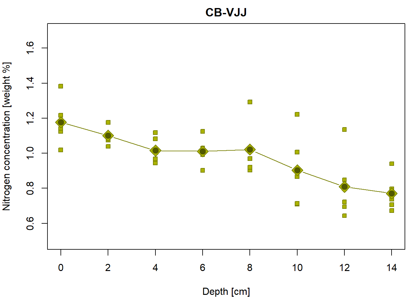Basic scatterplot for Nitrogen concentration given depth: