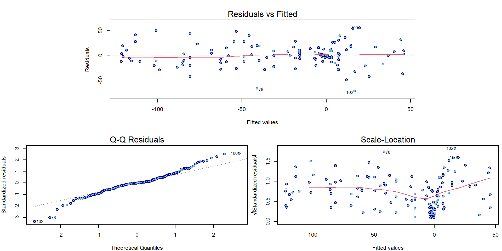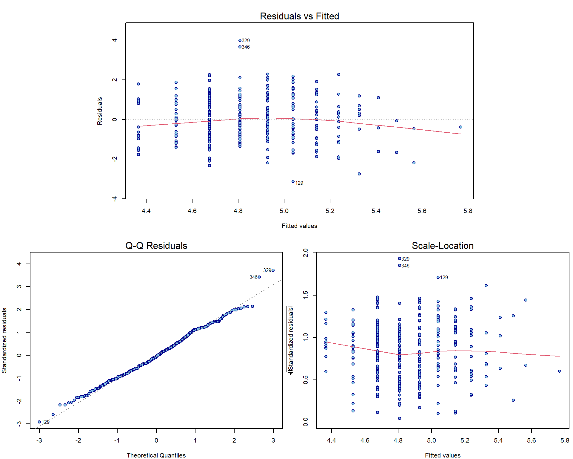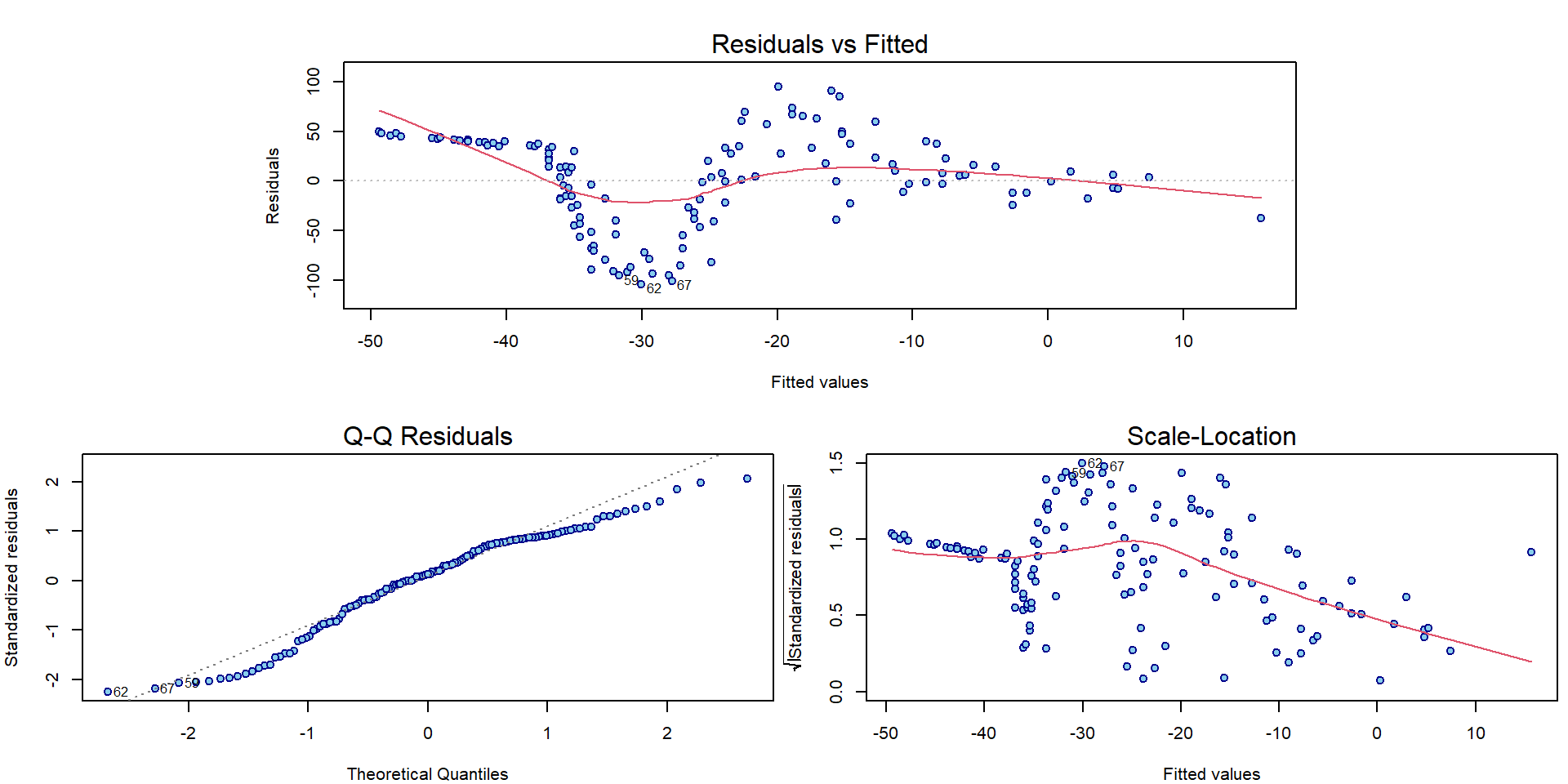 What about the interpretation of the classical diagnostic plots for the model fitted with B-splines?