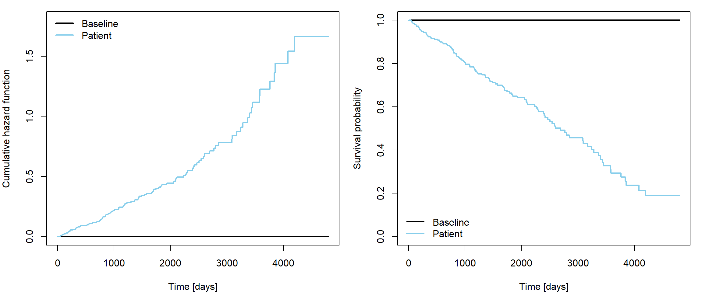 xlab = "Time [days]", ylab = "Difference in Log cumulative hazards",